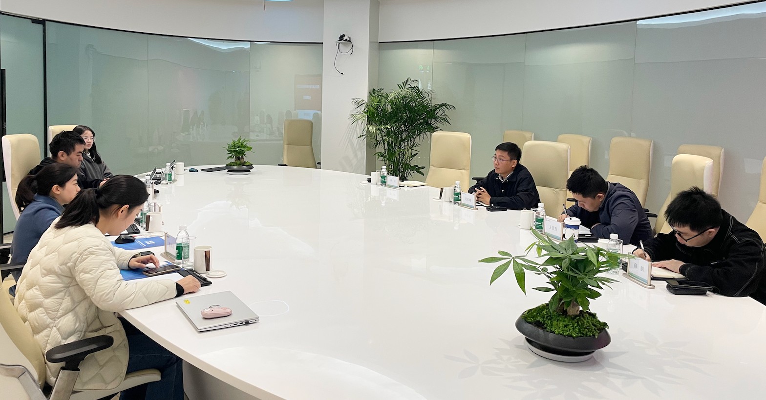 会前,川投云链一行参观了新网银行展示大厅,全面了解新网银行的线上化产品特色和科技创新能力。